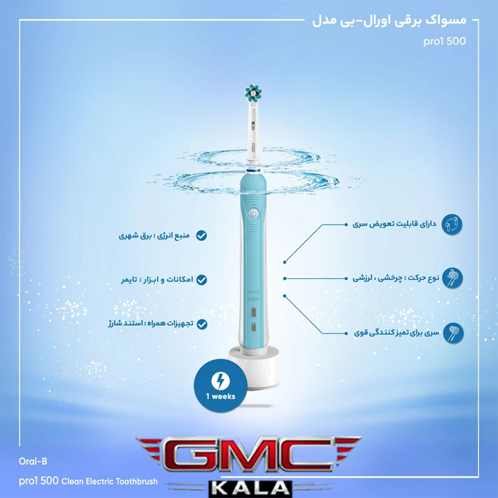 باتری قدرتمند با شارژدهی طولانی مسواک اورال بیpro1
